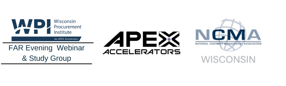 The Wisconsin Procurement Institute (WPI) and the National Contract Management Association (NCMA) – Wisconsin Chapter will be presenting the webinar, “12th Annual FAR Evening Webinar and Study Group Session 4: Introduction and FAR Parts 13-18.” This session is part of the 12th annual FAR Evening Sessions.