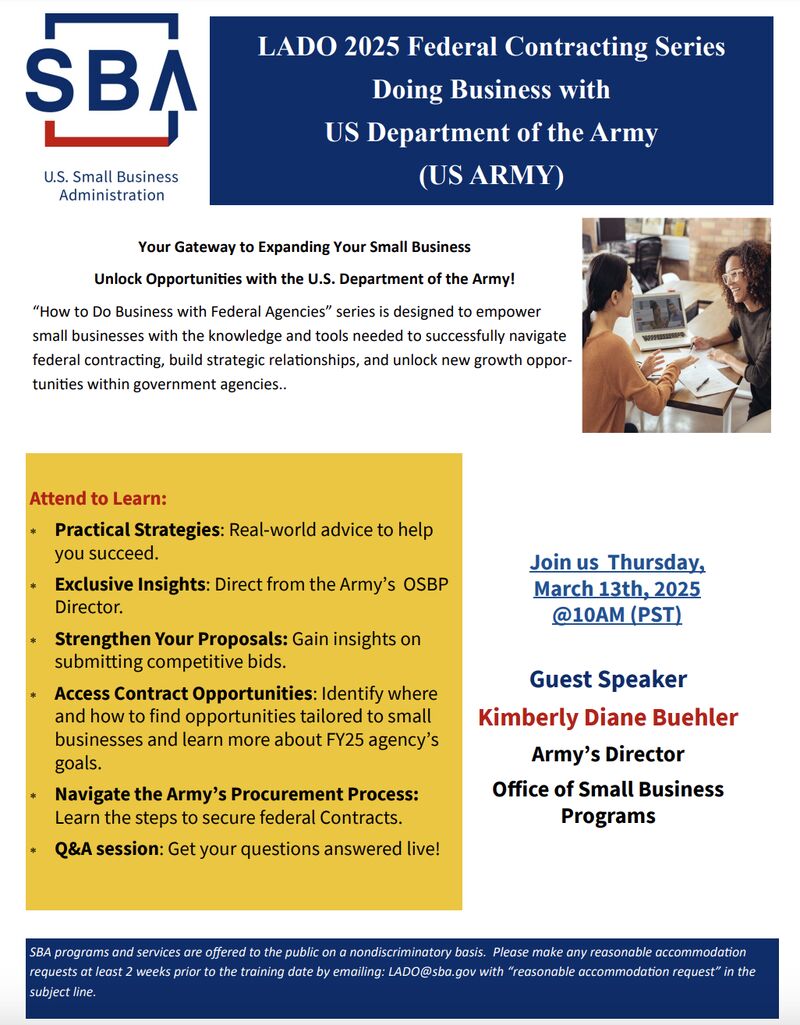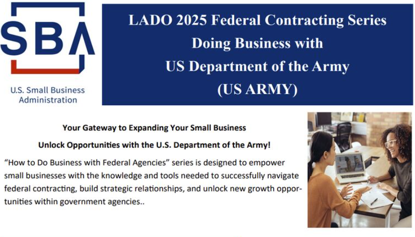 Join the U.S. Small Business Administration for the 2025 Federal Contracting Series: Doing Business with the U.S. Department of the Army.