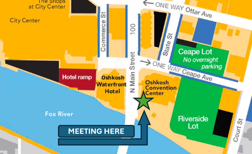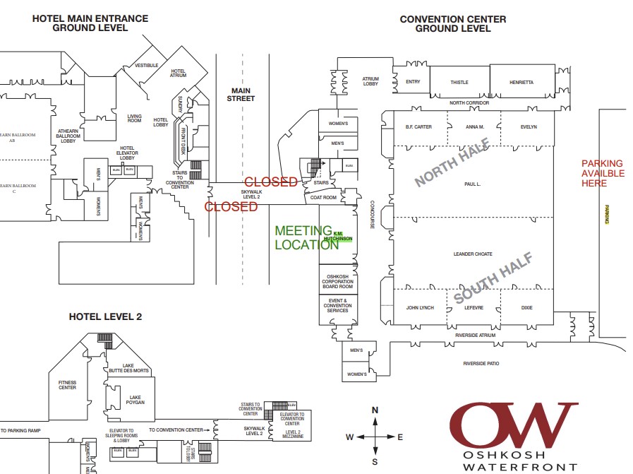 Parking is available in the Convention Center Riverside Parking Lot or in the Ceape Lot. The skywalk connecting the hotel and convention center is currently locked and not open to cross from the hotel parking structure to the Convention Center.