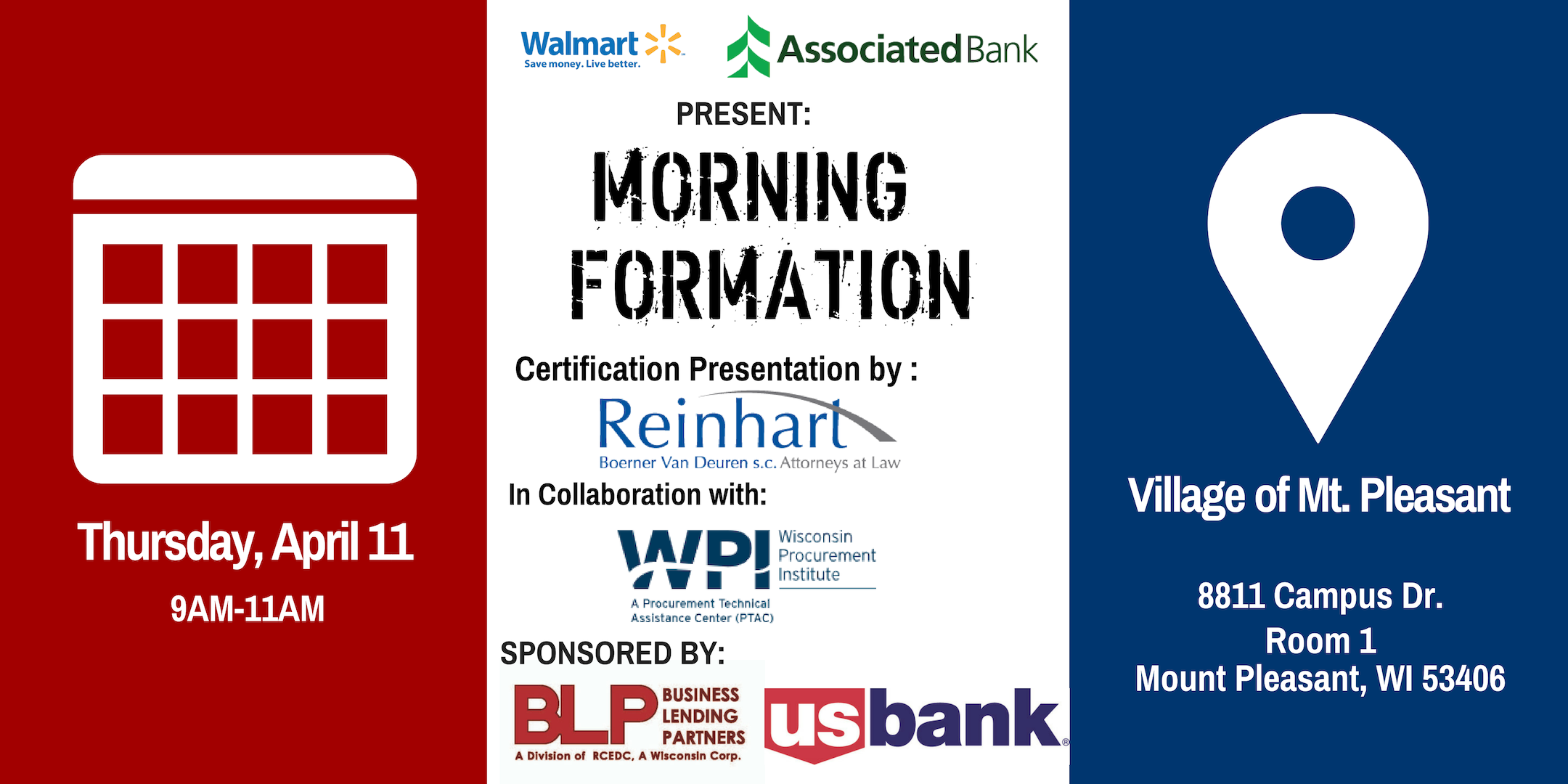 At this Morning Formation, we’ll be covering certification types, and how to apply for and acquire them. Do you qualify for DBE (disadvantaged business enterprise) programs? This presentation will discuss what to do once you have your certification and how to get started with state or federal contracting.